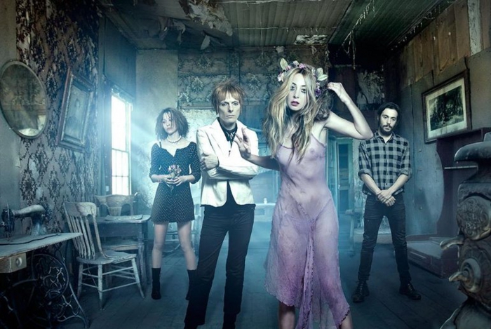 ボーカルのケイティ・ジェーン・ガーサイドのランジェリー風ファッション。